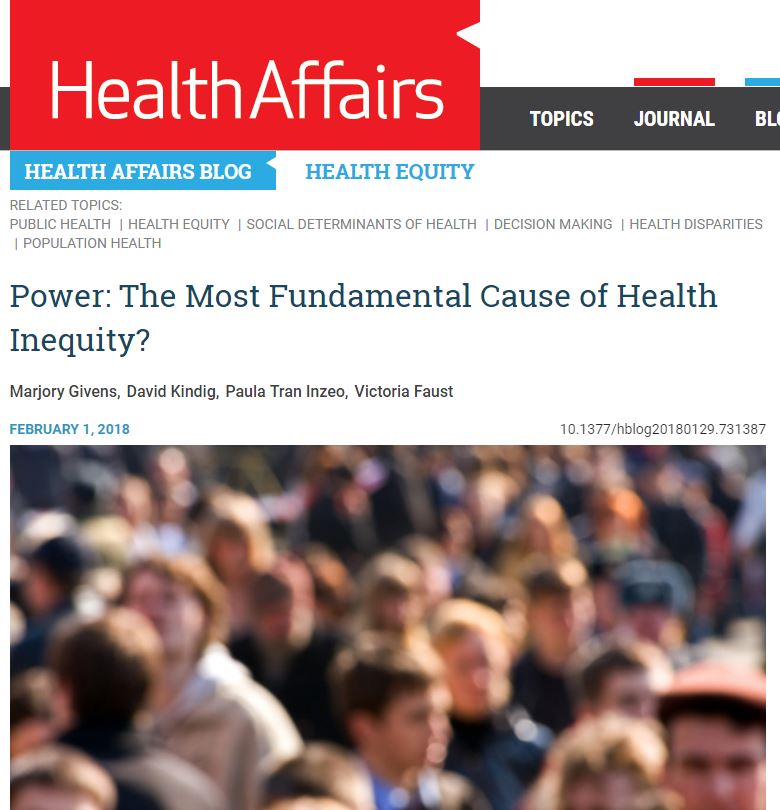 “Power: The Most Fundamental Cause of Health Inequity?, » Health Affairs Blog,February 1, 2018.DOI: 10.1377/hblog20180129.731387