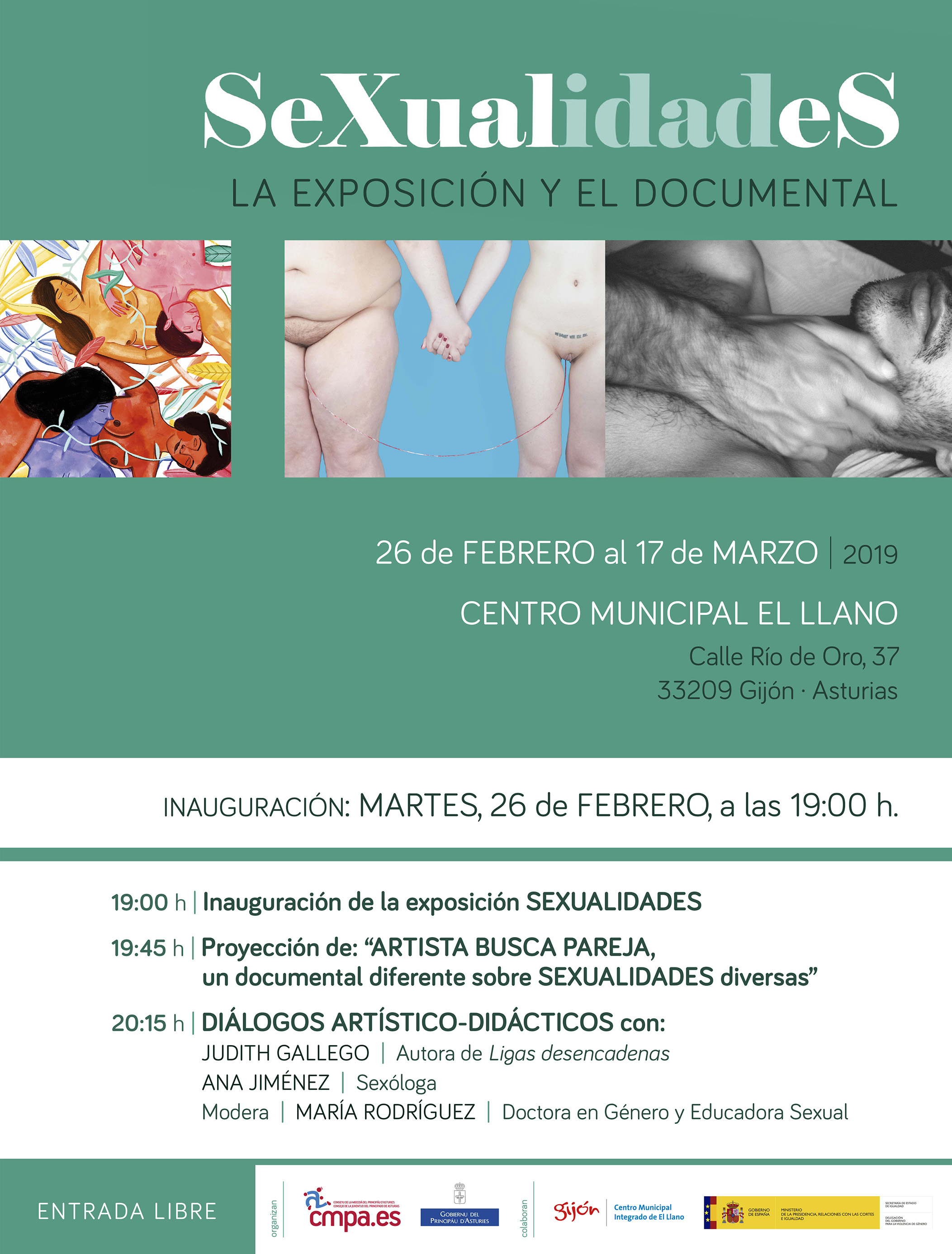 La Dirección General de Salud Pública, dentro de su proyecto Sexualidades, proyecto educativo, continua con las siguientes actividades: Inauguración de la exposición (19 horas) y proyección del documental Artista busca pareja (19.45 h) en el Centro Municipal El Llano (Gijón) el próximo martes 26 de febrero de 2019. Tras el documental, habrá un pequeño coloquio.