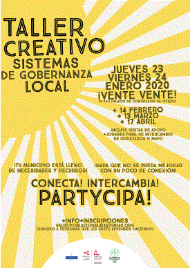 El taller dará comienzo en Oviedo los días 23 y 24 de enero de 2020 en horario de 10 a 14 horas, seguido posteriormente de una sesión mensual hasta la realización el 11 de mayo de una Jornada final para compartir experiencias. Durante dicho periodo, se contará con la posibilidad de recibir visitas de apoyo en terreno por parte de Partycipa. La solicitud de inscripción se puede realizar contactando con el correo salud.poblacional@asturias.org