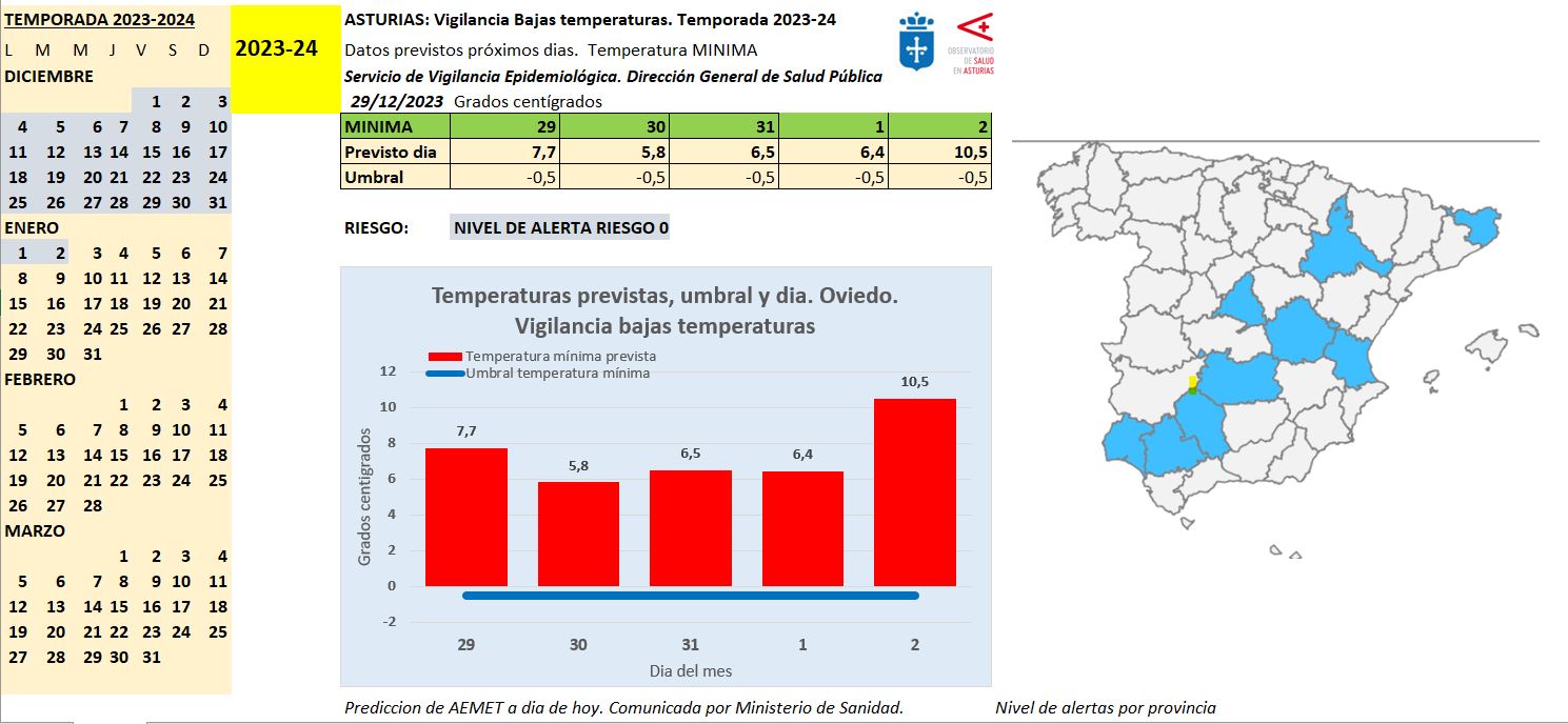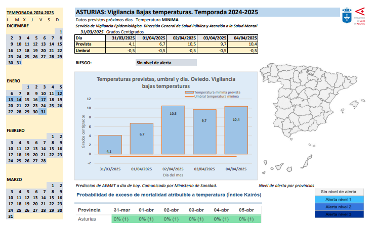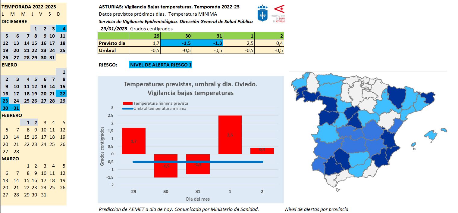 - los niveles de alerta establecidos para Asturias con carácter periódico (lunes y viernes)…