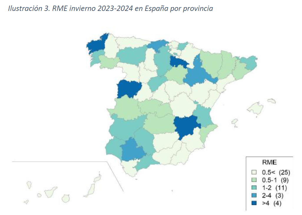 Fuente: Informe final bajas temperaturas, 2023-24. Ministerio de Sanidad