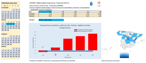 En este Plan se establecen las recomendaciones para reducir los efectos en la salud asociados a las bajas temperaturas, así como las medidas para coordinar las diferentes Administraciones. El Plan establece unas determinadas acciones para la prevención y el control, estructuradas en varios niveles de actuación según el nivel de riesgo alcanzado como consecuencia de descenso de las temperaturas. Además, plantea la recogida de información predictiva sobre temperatura ambiental e información diaria sobre los cambios cuantitativos de la mortalidad y establece los criterios del sistema de información que permite la vigilancia activa de los riesgos asociados a la exposición a bajas temperaturas