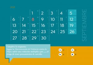 Según la Macroencuesta de Violencia contra la Mujer, sufrir una violación multiplica por ….. el riesgo de tener pensamientos de suicidio.