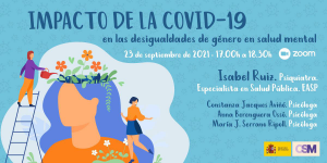 Se informa que el próximo 5 de mayo de 2022, en horario de 17.00 a 18.30 horas se emitirá por ZOOM el siguiente seminario: “Salud, Género y Covid-19: INVISIBILIDAD DE LAS MUJERES EN LA PANDEMIA”, dentro del ciclo de seminarios organizados desde el Observatorio de Salud de las Mujeres, con la colaboración de las siguientes ponentes: