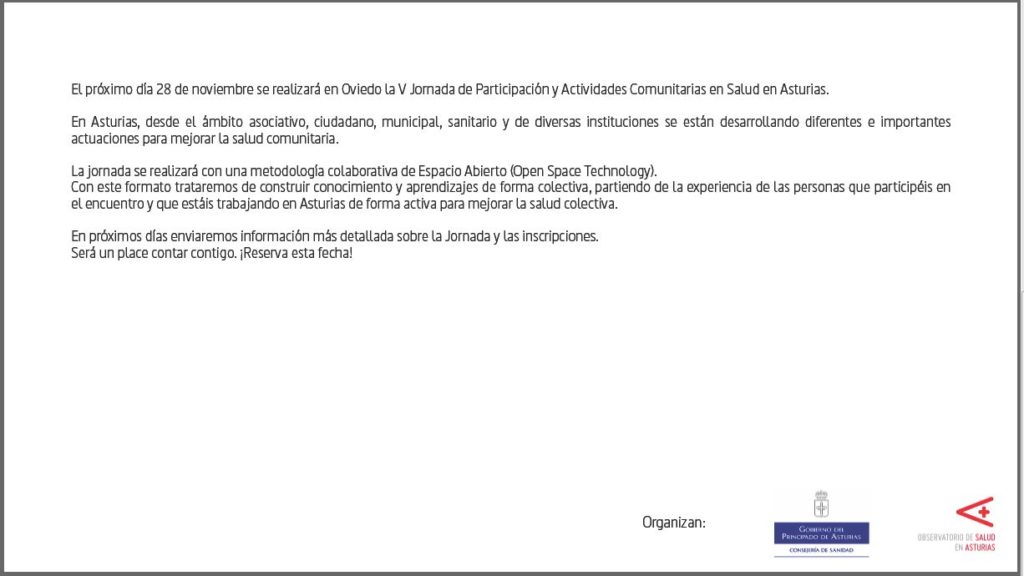 V Jornada de Participación y Actividades Comunitarias en Salud de Asturias